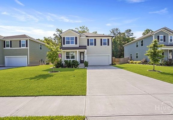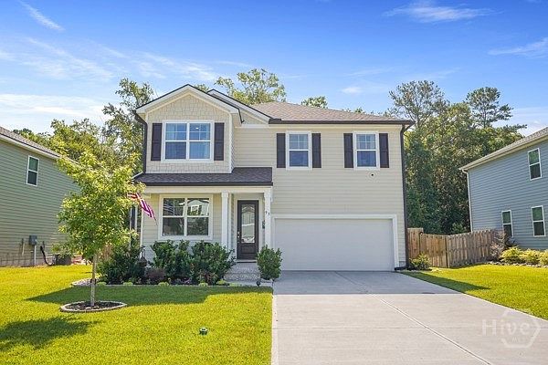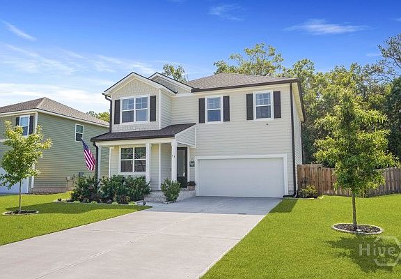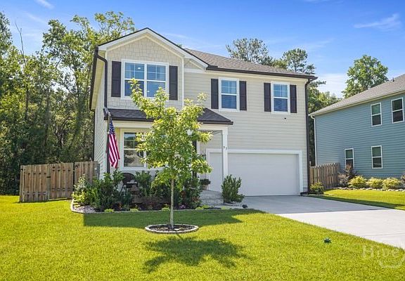 Welcome to 93 Gypsea Lane, a beautifully maintained 4 bedroom, 2.5 bath home located in the desirable Watergrass community! Step inside to open concept living featuring a kitchen with granite countertops, large island, stainless steel appliances, and a pantry with a sliding barn door that seamlessly connects the dining and living room. The main floor includes an electric fireplace on a custom shiplap wall and a flex room ideal space for an office or playroom. Upstairs the spacious primary suite features dual sinks, 5 ft fiberglass shower, and ample closet space. Laundry room conveniently located on the 2nd floor! Step outside to your own private backyard oasis, complete with an extended patio, charming Pergola, and a large fenced in yard that backs up to serene wood views. This gem has tons of upgrades; black gutters, stunning accent walls, fresh paint, modern light fixtures, and so much more. Perfect proximity to schools and situated between HAAF and Fort Stewart.