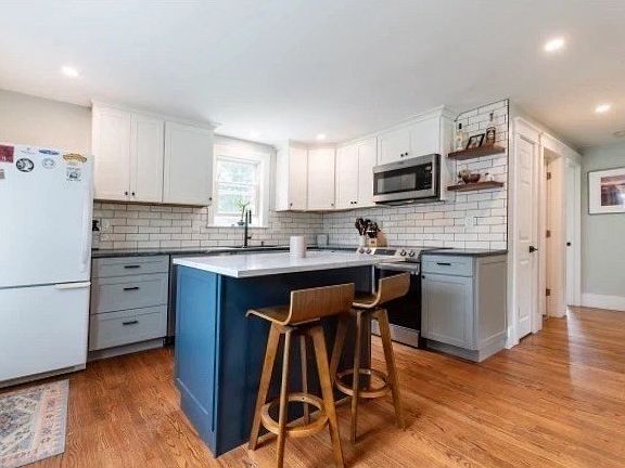 Welcome into this thoughtfully updated cape in a fantastic Wrentham location on a dead end street close to downtown. Enter into the newly renovated kitchen with stainless steel appliances and a mix of soapstone and quarts countertops. There are hardwood floors throughout as well as new Anderson doors and windows. Downstairs is an open concept with two bedrooms and a full Bath. Upstairs you will find the primary suite which spans the length of the house with a sitting area and also a full bath. The backyard is completely fenced in and has a large patio with a fire pit to enjoy all summer long.