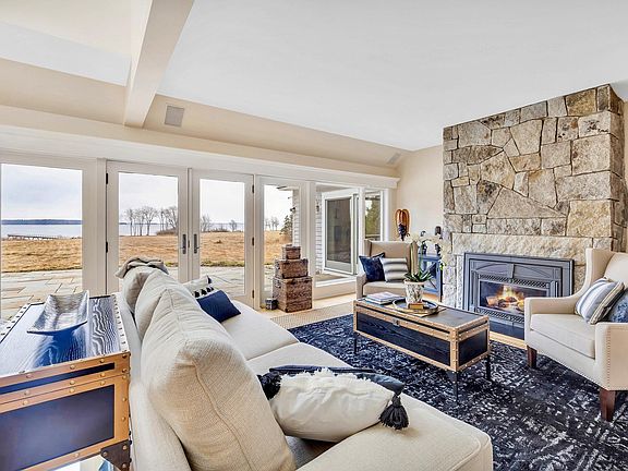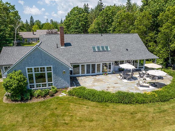This spectacular, 4.43 acre oceanfront estate offers year-round luxury living with breathtaking views over Blue Hill Bay toward the mountains of Acadia National Park and access to miles of walkable beach. The expansive property includes two beautiful homes. In addition, the main home's new heated garage and the new 1,700sf heated 'Barn' for storing and protecting your boats and RVs provide enhanced functionality and many options with the property. All buildings are designed to blend beautifully through matching cedar shake shingles and Dutch-gabled roofs. Boating and sailing enthusiasts will love the private pier, floating dock, and deep water mooring. The elegant 3,400sf, 3bed/2bath main home features a chef's kitchen, private office, stone fireplaces, expansive windows with stunning water views, a remarkable primary suite with double bathrooms/dressing rooms and new, heated garage. The third bedroom is currently being used as a sitting room/study. The delightful 1,300sf, 2bed and 1bath guest home features a full kitchen, stone hearth, and its own attached garage. In addition to the new 1,700sf heated 'RV/boat barn', the estate also offers a large heated workshop and a full gardener's shed. Designed with every detail in mind, the property boasts colorful gardens, landscaped grounds, and an expansive ocean view flagstone terrace, perfect for outdoor entertaining. A beautiful meadow leads to the beach and fills with colorful lupines and wildflowers from spring through fall. All buildings are insulated to the highest standards with backup generator systems and high-speed fiber optic internet spanning the property. This estate is nestled in a quiet neighborhood, yet with easy access to Brooklin village center and the lovely town of Blue Hill, with its prime shopping, dining, medical facilities, and entertainment. In addition, the world-renowned WoodenBoat School, just four miles away, offers boat building opportunities/classes as well as sailing/boating lessons.