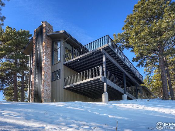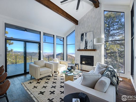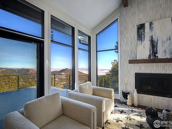 Simply one of the best views in Boulder greets you as you walk thru the front door of this masterfully renovated, luxury, mountain modern oasis. Perched atop the coveted Pine Brook Hills neighborhood, it is only 4.8 miles from Pearl, with year round access to world class hiking and biking right out your front door. The flowing floor plan connects seamlessly to the extensive decking systems creating effortless indoor/outdoor living. The 14' vaulted great room, featuring stunning floor to ceiling gas fireplace, beamed ceilings, and walls of glass opens onto a chef's dream kitchen that includes Thermador appliance package, work & prep sinks and large Carrara marble island with seating. The 26 x 11 master suite is it's own personal retreat w/a luxury spa-like bath. W/ 4 additional bedrooms, and a detached, powered studio (not included in sq.ft), plus lower level living area with wet bar, walking out to its own deck there is plenty of room for everyone plus offices and hobby spaces.