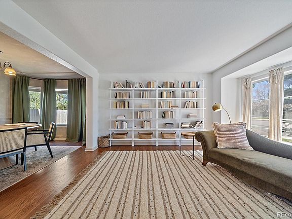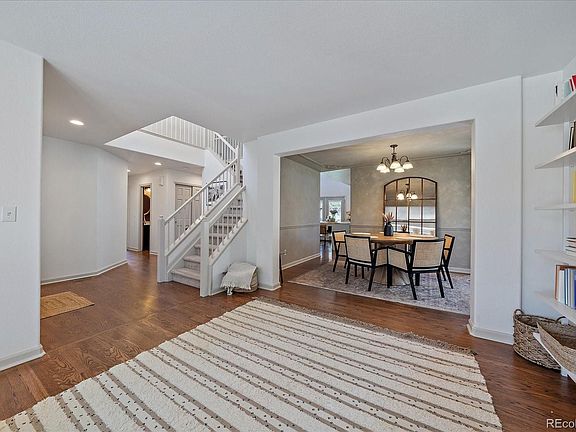 Welcome Home! Located on a large corner lot, in walking distance to the park and pool, this beautifully updated home has so much to offer! As you enter natural light fills every room showcasing the beautiful hardwood flooring throughout the living, dining, family room and kitchen. The living room features custom built-in shelves and is adjacent to a spacious formal dining room. The well designed kitchen features honed porcelain counter-tops (Calacatta Antique), a farmhouse copper apron sink, high-end Cafe appliances, a large custom island with extra storage, designer shelving, a generous amount of cabinetry, and a large pantry. Entertaining is made easy from the kitchen to the covered back deck through the French doors leading to a landscaped backyard with raised garden bed. Relax in a Spacious Family Room with designer wood-trimmed wall and gas fireplace. Retreat to the primary suite with a custom ship-lap wall and en-suite 5 piece bath with granite counters abundant cabinetry and a large walk-in closet with custom-built-ins. Three more bedrooms and a full bath complete the upper level. Plenty of room to expand in the unfinished basement with a full bath already installed. Easy access to I-25 and within walking distance to the Pool, Clubhouse and Founders Park with over 25 acres of Amenities including, Basketball courts, a paved Bike Path, Multi-use fields, Pickle-ball courts, a Pavilion and Playground. Founders Village Living at its Finest!