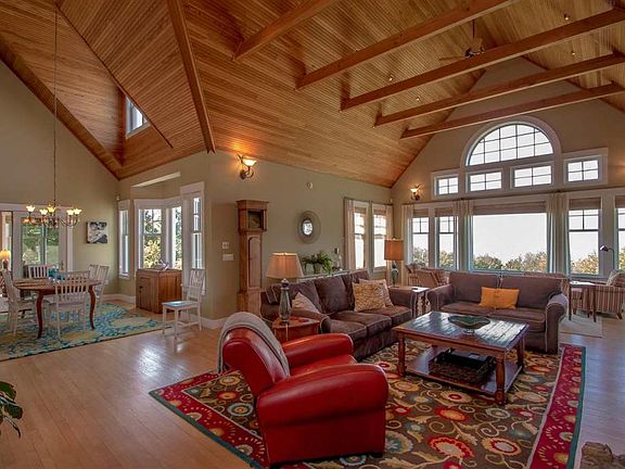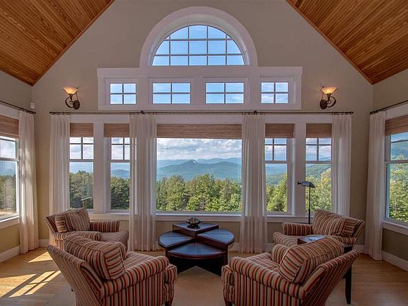 A rare 25-acre Jackson view property offering a strong sense of place, mountain vistas and the peaceful lifestyle of the White Mountains, a perfect Jackson retreat. Wide direct views of Mt. Washington and the slopes of Black Mountain, a dramatic stone fireplace, high volume cathedral ceiling, 4-season turret sun room with a gas log fireplace, open floor plan, well planned kitchen and great pantry storage. 4 bedrooms including a main level master suite with breathtaking views, a walk-out lower level with a relaxed family room with a sitting area, a bar for entertaining, 2 bedrooms and a bath. The upper level has a loft sitting area, an office, an en suite bedroom and a walk-in attic. The attached 3-car garage has a drive-in drive-out bay. All this and a small vineyard, fruit trees, stone walls, flowering trees, a patio, basketball half court and lots of room to host family and friends for sunsets, lawn games or a wedding.