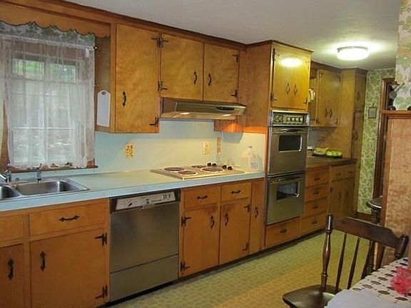 PRIME LOCATION! Much sought-after area of finer homes. A very unique well-crafted property carefully maintained through the years! Everyone love to cook? This home has a DOUBLE kitchen! You have to see it to get it! Lovely formal dining room and step down living room with wrought iron railings. LR slider opens to pretty patio. Very spacious family room / informal dining room with wood stove. Also a cozy den. Gleaming hardwood flooring throughout. Four bedrooms! Master bath. Nicely manicured yard with raised flower/vegetable beds! The home is in need of some cosmetic updating but well worth it!