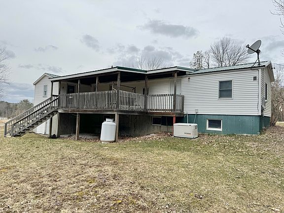 This 1975 2BR/1BA single wide mobile home sits on a full foundation and offers two additions. Enter through a four-season sun porch, inside find a kitchen w/ propane wall heater, back addition includes basement access and a large covered back deck. Extra's include a 16KW Generac home generator & storage building all on a private 1.10 acre wooded lot. Home is being sold ''As-is''.