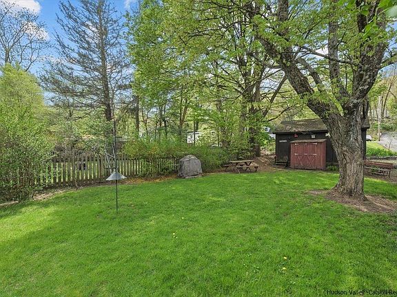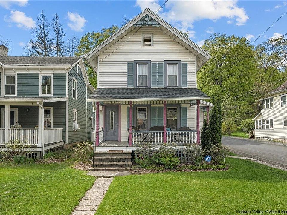 Rosendale has been dubbed one of the hippest towns in the Hudson Valley. Located 1:45 minutes via bus from NYC, Rosendale has all the charm of Upstate with some downtown flavor. With all that Rosendale has to offer at your fingertips here, this two-bedroom updated Victorian is loaded with curb appeal and filled with character. Nestled among mature trees and perennial plantings, you are within walking distance to downtown Rosendale, the Hudson Valley Rail Trail, and minutes to neighboring New Paltz and Kingston. Enter the home through the amazing covered front porch. The front door leads you into an open and bright living room with gorgeous original floors, flowing into the eat-in/dining area and completed transformed kitchen granite countertops, accent wood walls, string ceilings, new cabinets and stainless appliances. The main floor also features a shared bath, a den/office and a covered rear porch, surrounded by beautiful plantings. The second floor features two large spacious bedrooms with a completely renovated full bathroom. The lower level is a full basement perfect with ample storage. The outdoor area offers an oversized storage shed, surrounded by beautiful gardens, picnic tables and sitting areas, perfect for outdoor entertaining and relaxation. An absolutely amazing little home perfect for a full-time or weekend residence, in an unbelievable location.