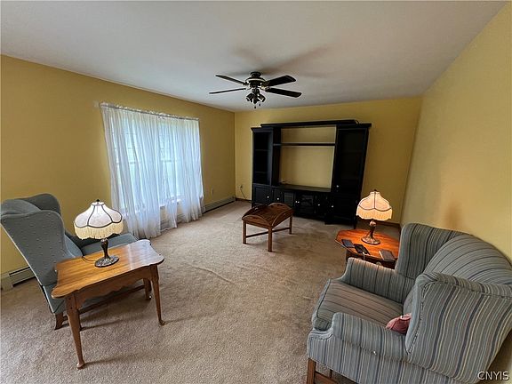 This 3-bed, 2-bath Cape Cod home is located in the Town of Scriba. It sits on 5 acres, with nearly 3 acres being wooded; perfect for trails and outdoor fun. There is one bedroom located on the first floor, with another room that has been used as an office in the past, and could easily become a fourth bedroom. The kitchen is large and open with a spacious dining area to the side. In the front of the house sits a living room, perfect for entertaining. There is also a full bath on the main floor. Upstairs is home to two large bedrooms and a full bath. The front yard is welcoming with a large circular blacktop driveway.