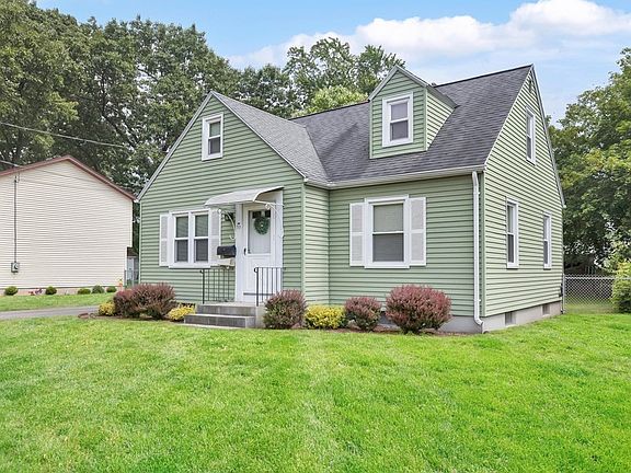 This charming Cape style home located in Chicopee is move in ready. The house features 4 bedrooms, 1 bathroom and has been well maintained over the years. Enter into the heated, enclosed mudroom packed with lots of windows and a large storage closet. Step into kitchen with ceramic tiled flooring and a cozy dining area. The living room is bright and airy with hardwood flooring. 2 ample sized bedrooms with hardwood flooring and a full bathroom with walk in shower round off the first floor. Upstairs are 2 more bedrooms with built in cabinets that are perfect for a kid's room or home office. The home features updated mechanicals, Central Air conditioning, Vinyl siding, replacement windows and a one car garage. The house has a beautiful completely fenced in yard perfect for entertaining guests, kids at play or pets to enjoy. And it's in close proximity to the Ike Alpert Park. This home is ideal for anyone looking for an affordable home in a convenient location.
