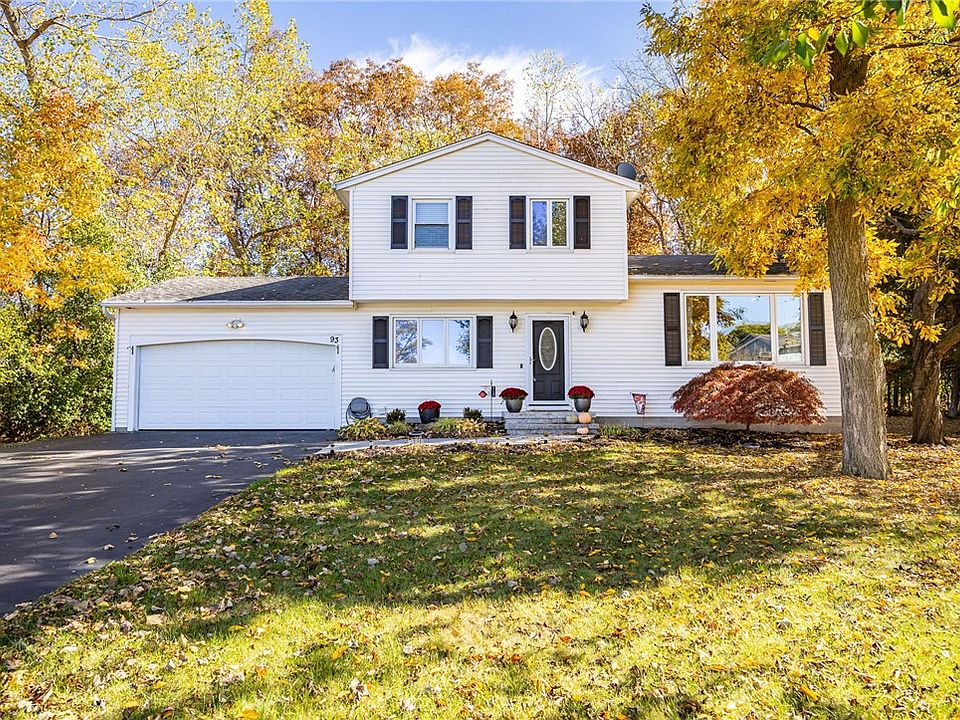 SPENCERPORT SCHOOLS! Welcome to this stunning 3 bedroom (possible 4) 1.5 bath home tucked away on a peaceful, dead-end cul de sac. In a highly desired neighborhood, conveniently located close to shopping, expressways and more! Every inch of this home has been thoughtfully updated from top to bottom offering modern style and functionality throughout. Step inside to a spacious foyer leading to a wide open living room that seamlessly flows into the gorgeous eat-in kitchen. This kitchen offers beautiful white cabinets, stainless steel appliances, new countertops and trendy floating shelves. The first floor half bath has been tastefully updated. Downstairs you will also find a possible 4th bedroom, currently being used as a home office. Upstairs you will find three additional bedrooms and a gorgeous full bath. Continuing on to the basement you will find a large finished space perfect for a family room or play room! Additional storage on the lowest level! Stepping outside the sliding glass door onto the deck you overlook the completely PRIVATE yard, giving peace and tranquility. This home truly offers it all. All offers to be considered Monday 10/20/25 at Noon.