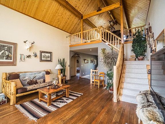 Beautiful 5 Bed/3 Bath Home surrounded by mature landscaping, featuring underground sprinklers & drip system. Home features vaulted ceilings, custom tile, circular sawn wood floors, sauna, central vac & much more. You'll be hard pressed to find a nicer horse property. Property includes close to 40 acres, an outdoor arena w/lights, heated shop w/ attached barn space and a coverall building for dry storage/indoor riding. Other amenities include fenced corrals/pastures, livestock lean-to/shelters, 3 automatic livestock waterers, irrigated hay meadows & sub irrigated pasture. This is a must see property!!