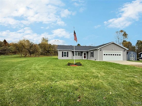 Welcome to this stunning newer-built home, perfectly nestled on just under 2 acres of serene, private country land. This 3-bedroom, 2-bath gem boasts high-end finishes throughout, including elegant marble countertops in the gourmet kitchen. The kitchen also features a convenient small pantry and plenty of cabinet space with pull-outs for ease of access. The primary bedroom offers a luxurious ensuite with a spacious walk-in closet and a full tiled walk-in shower. Enjoy the convenience of first-floor living, a roomy 2-car attached garage, and additional storage in a handy shed. The outdoor patio is perfect for entertaining or relaxing in the peaceful setting. Don’t miss out on this exceptional retreat!