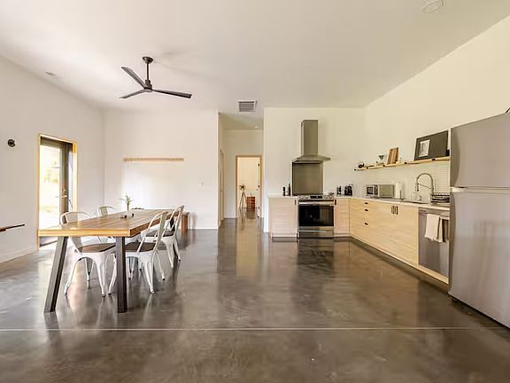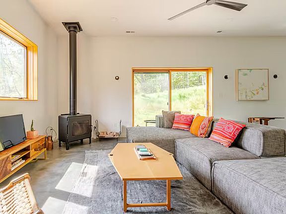 Welcome! This Barndominium is a brand new, architect/woodworker designed, very private, unique local residence. It is attached to a beautiful woodworking studio. It features elevated touches throughout like polished concrete floors, venetian plaster, custom furniture, bright airy windows, a walk in rain shower and steam room, soaking tub, wood stove and so much more! The property is nestled in nature and is located just minutes from the favorite hangouts Westwind, Arrowwood and Inness. This is a unique residence. It is situated on a 10 acre property with a newly planted orchard. The residence is attached to a modern barn/woodworking studio that specializes in high end residential solid wood contemporary furniture. If your are curious we'd be happy to give you a tour. It's pretty cool. Rest assured that your experience will be completely private, nature immersed, classy and quiet. The residence is at the far end of the studio/barn. You will likely not even feel the presence of the studio as your entrance is separate and there is extensive soundproofing. The property features an open floor plan, with the living room, kitchen, and dining area seamlessly connected in the main space, along with a full bathroom. On the other side, you'll find a spacious separate bedroom complete with a master bathroom and a walk-in closet. The master bath has a massive steam shower with venetian plaster and rain shower head. There are radiant heat floors throughout and we use 100% solar electricity. There are forest views out the back and side windows and a hilltop orchard/meadow view out the front. The utilities fee is monthly and includes all utilities like water, electric, heat, water filtration and maintenance such as snow removal services in winter, lawn cuttings, and garbage disposal. A bi-montly cleaning is suggested with our lovely cleaning crew but not mandatory. We can add in bottled water deliveries for a small additional fee and we can our also leave beautiful linens in the house for an extra fee as well such as premium towels and bedding.