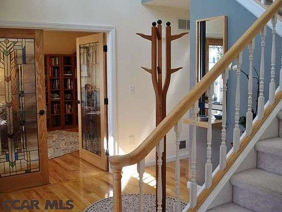 Light, bright and full of space inside and out, this impressive home sits on a well manicured 1.5 acre lot, fenced and boasting breathtaking sunset views in State College School District. The interior is large in square footage, has a fabulous open floor plan and a great flow. The first floor office with stunning stained glass french doors is located just inside the grand 2 story entry. Hardwood floors throughout the first and second floor. The family room spills into beautifully renovated kitchen. Big bright windows and door to deck invite you outside. Upstairs you'll want to escape in the large master bedroom with his and hers closets and master bath with large walk-in shower. Additional 3 bedrooms and full bath upstairs. Fun lower level with walk out doors to back yard is complete with large family room, bedroom with attached full bathroom, and propane stove. Also noteable: oversized 2 car garage, radon mitigated and central vacuum system. (Central vac accessories need to be purchased.)