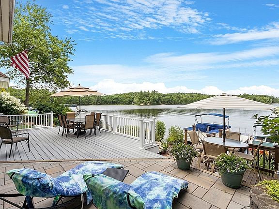 Gorgeous waterfront! Perfect in every way. From the beautiful kitchen and baths to the amazing waterfront to the wonderful artist studio and gym over a 2 car garage to the perfectly landscaped grounds and patios to the 3 season porch off the main bedroom with views, this property is amazing. You will never want to leave home. And you can have all the toys! Swim off your dock, which is big enough for 2 boats. And there is a private little beach area with docking for 2 jet skis. A lovely big patio can host a huge family, or there is enough privacy to just relax with your partner. The 2 bedroom, 2 bath house has been meticulously updated and maintained. The gourmet kitchen and dining room have a slate floor with radiant heat. The baths are new and beautifully tiled. There is even a small guest house or separate home office building and a heated oversized 2 car garage with an artist studio/ gym over it .