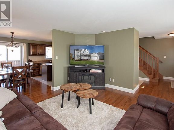 Welcome to 93 Mayfield located in MONCTON'S POPULAR NORTH END by EVERGREEN PARK SCHOOL. FEATURES INCLUDE NATURAL GAS HEAT PUMP. This Climate controlled home features low maintenance vinyl siding and vinyl railings. 2 car garage (21x24). On the main floor you will find a bright family room that opens up to the eat-in kitchen with stainless steel appliances, back-splash and granite countertops. The garden doors lead out to the deck that leads down to a stamped patio and partially fenced yard. The main floor is complete with a 2 car garage and 2pc bath/laundry room. Upstairs you will find 3 bedrooms and a 5pc bath that leads to the master bedroom. The basement is finished with a large family room, 4pc bath and large storage room that could possibly be finished to a 4th bedroom. Call Today for your Personal Showing! (id:1184)