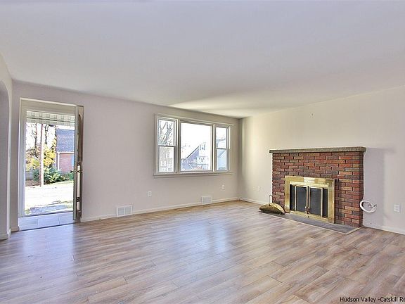 What a cozy down-sizer or perfect for your first time home buyer! This move-in ready ranch is literally feet from Edson Elementary and Bailey Middle Schools! Enjoy the convenience of living in the desirable Uptown Kingston area within walking distance to the ball field, Forsythe Park, Dietz Stadium sports center, Bus to NYC, eateries and the Farmers Market!  As you enter there is a large living room with beautiful brick wood burning fireplace. The kitchen is graced with solid wood cabinets, custom built-in cabinetry and a nice size eat-in area/breakfast room that easily accommodates 6. The kitchen also has ceramic tile floors, great decorative tile back splash and a washer and dryer hookup.  Two nice size bedrooms are separated by a renovated full bath, both bedrooms have good size closet space. The home has off street parking to the right side of the home and a sizable back yard that is easy to maintain.  Basement is around back with bilco access.  Central AC compressor may need to be replaced.