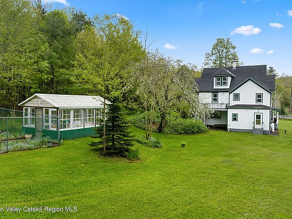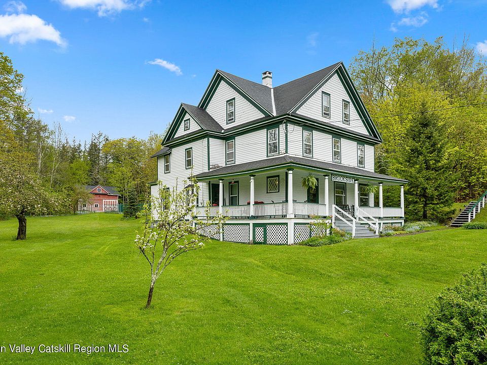 Introducing ''Brookside,'' a captivating 1920 farmhouse nestled in picturesque Haines Falls, NY. This charming property spans 7 acres and boasts 7 bedrooms, 4 bathrooms, and 3 stories of historic charm. Perfectly situated mere minutes from the renowned Kaaterskill Falls, North Lake, and a network of hiking trails leading to the iconic Alligator Rock, as well as sites of the former Catskill Mountain House and Kaaterskill Hotel, also just a short drive to Hunter and Windham Mountains for skiing. This property is a year round nature lover's paradise. A greenhouse and 2-story barn enhances the rustic appeal and functionality of the property. One of the property's most enchanting features is the presence of the Kaaterskill Creek, which runs through the 7 acres, adding a serene and idyllic ambiance. The interior of the home is trimmed with original wood details, preserving the timeless allure of the farmhouse. With a recent history as a B&B, ''Brookside'' offers the potential for a variety of uses, from a private residence to a hobby farm or possibly resurrecting its charming hospitality past. Furthermore, the convenience of being close to the vibrant communities of Tannersville, Hunter, Windham and Woodstock ensures that residents and guests alike can enjoy easy access to exceptional shopping and dining experiences. ''Brookside'' presents a rare opportunity to own a piece of Catskills history, while also providing a serene retreat for those seeking tranquility amidst the beauty of upstate New York.