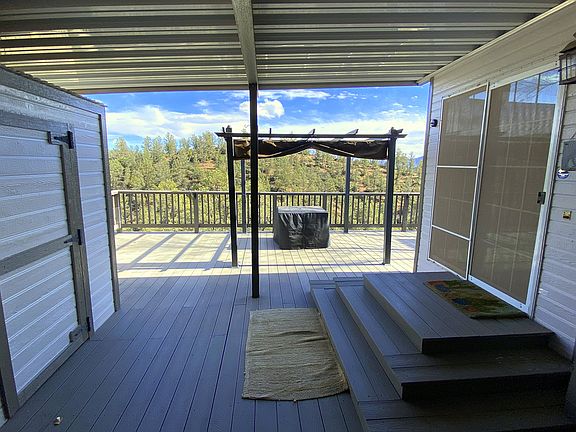 Looking for a get away or year around living? Perhaps this attractive, perfectly maintained home is for you. Sky Run Resort, Payson area’s premiere Park Model community, is gated and private with wonderful views. This 55 and over senior community has only 25 homes located on a hilltop in Star Valley, a short four miles from the town of Payson. Owners have recently installed window coverings and a propane fireplace in the living room. Pergo flooring throughout. Easy work kitchen with newer refrigerator and stove installed in 2013 and a new water heater and air conditioner in 2016. The home has a newer roof and was recently painted in 2019. This lovely unit has an added room with a separate entrance, which could be used as a second bedroom, office or hobby room. There is a large two-door storage unit, privacy gate and covered parking. Step out onto a huge Trex deck with a pergola and propane firepit, wonderful for entertaining friends and guests. Stately pine trees and marvelous mountain views complete this very private oasis! A clubhouse with big screen TV and computer with WiFi is available for entertaining friends, family and for community functions. Lot rent of $500/mo. paid annually includes: water, sewer, trash and cable TV. *** Priced to sell at just $47,900! UNIT 9 *** TO SEE call John at 928-200-7512. Shown by appointment only. NOTE: Not a realtor, just neighbors helping neighbors sell their home.