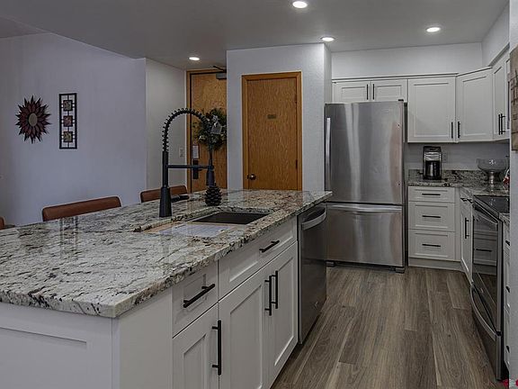 First time ever on the market. This is an incredible opportunity to own a completely remodeled, ski-in/ski-out condo, just steps away from the two main lifts at the base of Purgatory Resort. This spacious and bright two bedroom condo features many updates including a beautiful new kitchen complete with brand new white cabinets, granite countertops, all new appliances, flooring, modern black hardware and LED lighting. The updates continue throughout the condo with new paint, luxury vinyl flooring, lighting, sofa sleeper, master bed and bedroom furniture. The bathrooms are stunning as well with new cabinetry and hardware, quartz countertops and beautiful tile showers including a steam shower. Enjoy entertaining with the open concept floorplan, 10' high ceilings, and large outdoor deck overlooking Purgatory Plaza. The real wood burning fireplace adds cozy ambience on chilly winter nights, and the direct access to the slopes is nearly unbeatable! It is an excellent vacation rental with the flexibility to lock off the master suite; making it rentable as either a 2BR/2BA or a 1BR/1BA full condo plus a king hotel suite. It is also an end-unit which provides additional windows and light and there is an second deck off one of the bedrooms, allowing for even more outdoor enjoyment. The condo is being sold FULLY FURNISHED and ready for you to enjoy right away this ski season. One covered parking space is included as well as a private ski locker. The building has a roof top hot tub and owners in Village Center also have full access to all the amenities in Purgatory Lodge which include a private restaurant and bar, fitness center, spa, hot tub and a heated year-round outdoor pool. The HOA covers water, sewer, trash, cable TV, high speed internet, basic phone, firewood, hot water (central boiler), exterior building maintenance & insurance, common area maintenance and insurance, hot tub and parking area. Don't miss your opportunity to own a fully remodeled condo in one of the best locations on the mountain!