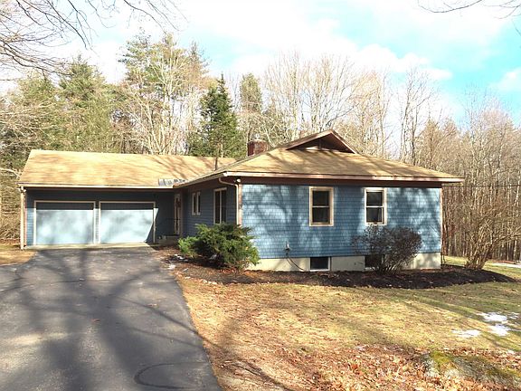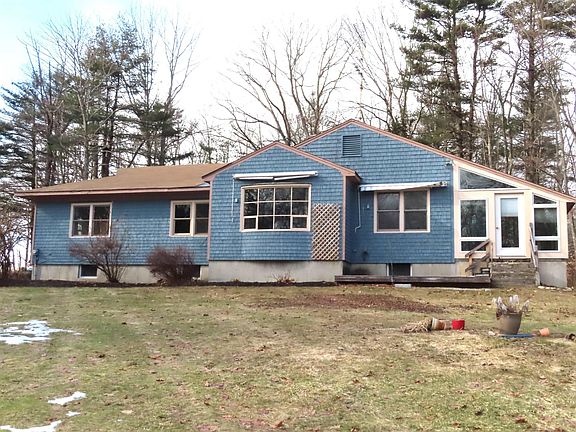 Quality built Ranch, on a scenic paved country road, offering abundant sunshine & southern exposure. Dramatic open concept LR/DR combo with plenty of sunlight, multi-paned bow window, ceiling fan & a handsome gas fireplace. Gas fireplace has a built-in bookcase to the left & enclosed storage on the bottom. Patio slider from the LR/DR into the Sunroom. Dine-in KIT has also been updated with raised panel pine cabinetry, plenty of cabinet storage, stainless steel sink with a drainboard, excellent counter work space, pull-out pantry and walk-in pantry. Kitchen door opens right out into a lovely 3 season sunroom. Sunroom was converted from a screened porch into a delightful room. Primary BDR with twin closets and 3/4 bath. Full 2 section bath off of the main hallway with a Corian counter & tile floor. Separate laundry room. All natural woodwork, handsome stained oak flooring & several pocket doors. Covered entry into the front door with a large coat closet and slate flooring. Attached 2 car garage with a handicap ramp enters into the main entrance hallway. Full dry basement would make a good workshop area.