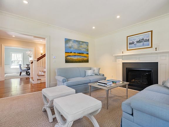 Inviting custom classic colonial with a picket fence in a sought after setting close to town. Gracious entry hall introduces lovely finishes with nine-foot main floor ceilings, marble-baths, and random-width oak flooring. Elegant living room with gas fireplace; gracious dining room; cozy library/den.French doors to terrace with built in grill and private yard from vaulted three-exposure family room with stone fireplace and fabulous marble-appointed kitchen with eat in kitchen, butler's pantry, breakfast area, superior Viking, Bosch, SubZero appliances. Master with his/her walk-in closets, luxurious radiant-heated bath with steam shower, air-massage tub. Three family bedrooms and two baths finish off the second floor. Large play room with au pair suite on the lower level.