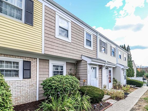 Fabulous, Move-in Ready, 2-Bedroom Townhouse in the Heart of Danbury! This well-maintained 2-bedroom, 1.5-bath townhouse offers comfort, convenience, and easy living in a centrally located Danbury community. The main level features an inviting open layout with engineered hardwood floors. The modern kitchen offers granite countertops, dark wood cabinets, a gas stainless steel range and tile flooring. There is also a separate counter with storage offering ideal space for cooking prep. The dining area is large enough for table and six chairs and flows effortlessly to the spacious living room that opens to an outdoor deck overlooking the grassy lawn. Upstairs, both bedrooms feature engineered hardwood flooring. The primary bedroom includes sliders to a private upper-level deck perfect for relaxing with a view. An updated Jack-and-Jill full bathroom and a convenient laundry closet complete the second floor, + attic for additional storage. Village Square is a friendly community offering a pool + clubhouse. Low common charges include water and sewer! The unit includes one assigned parking space with plenty of additional visitor parking available + extra separate storage. Located across from Park Avenue Elementary and just minutes to I-84, Route 7, Danbury Fair Mall, and the NY border makes this spot ideal for commuters and anyone seeking a convenient yet neighborhood-style setting. Move right in and enjoy comfortable, low-maintenance living in a fantastic location.