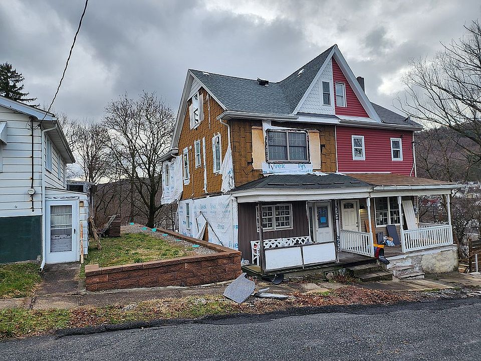 rehab property, most windows and doors replaced, roof replaced, materials for kitchen / bath / windows to finish house offered with sale.