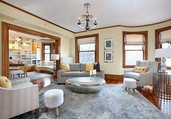 A Beautiful Queen Ann era charming condo in one of the most sought after streets of Brookline. This spacious condo features 2300 of living space. Gracefully arched openings, wide hallways, high ceilings draped with crown molding, spectacular curved bay windows, a grand chef kitchen accompanied by a stunning butlers pantry and sun filled breakfast nook overlooking the beautiful foliage-filled views. This lovely unit features 3 bedroom, 2 full bathrooms, Library filled with built-ins, oversized family with beautiful bay windows. The chef kitchen is wonderful for cooking and hosting.The neighborhood is highly desired and location can not be beat. Close proximity to both Coolidge corner and the Longwood, and easy access to the T. 1 parking spot and separate storage spaces. This is truly one of a kind. This unit will not last long!