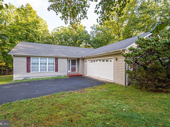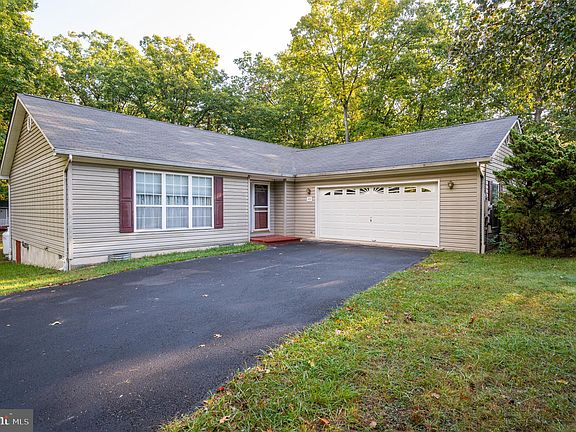 This lovely 3 bedroom 2 bath rancher sits on over an acre lot. The paved driveway with turn around afford lots of parking outside of your two car attached garage. Inside, the welcoming foyer features vinyl floors and a guest closet for plenty of storage. The spacious living room is carpeted. It features a ceiling fan and a propane, free standing fireplace. This will come in handy as the weather cools. The living room opens to the dining room. A decorative light fixture defines the space. Beyond that is your kitchen. Here you have vinyl floors, oak raised panel cabinetry, and laminate countertops. All appliances convey. Vinyl floor carries into the breakfast room space. Beyond this you have a spacious laundry room with vinyl floors and three upper cabinets for storage. The laundry machines do convey. Down the hall you have two generously sized bedrooms with carpet and overhead lighting. The hall bath features vinyl floors, 30 inch single bowl vanity, and 5 foot tub/shower combo. The primary suite features carpet and a ceiling fan. The flatscreen TV conveys. Your suite has a walk-in closet with shelving. The private ensuite bathroom features vinyl floors, 3 ft single bowl vanity with oak base, and 5 ft tub/shower. This suite has everything you want and need. Outside you have a large rear deck. This is a great place to BBQ or roast marshmallows. Stairs walk down to the rear yard. Your rear yard is lush with grass and level. It backs to mature trees for privacy. At the edge of the trees you have a large outbuilding with a little porch. The roof and the heat pump have both been updated. This home has so much potential for you and your family. Call for your showing today!