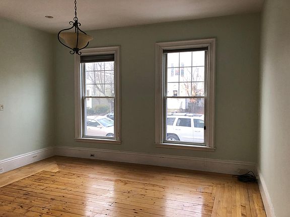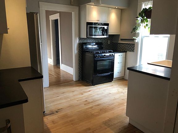 Wonderful large first floor unit of 2-family Victorian home. 3 large bedrooms, 2 with walk-in closets. Hardwood floors throughout, newly refinished. Wonderful custom kitchen with granite counters, gas 5 burner stove, dishwasher, built-in microwave, stainless fridge, farmers sink and enormous walk-in pantry. Huge dining room, soaring ceilings, crown molding, built-ins, french doors and more. This layout is perfect for roommates as a two bed with office or as a 1 bed with office and media room/library. Large bathroom with washer/dryer hookups and double size shower (no tub). Living room with nice bump-out windows and built-ins. 2 car off-street parking. Energy-efficient replacement vinyl windows throughout. New gas furnace installed this year (switched from oil)! Great porch and yard space to enjoy, walking distance to the downtown, restaurants and local parks. Owner pays water/sewer. Tenant pays all other utilities (gas heat, and electric), pets negotiable on a case-by-case basis, and subject to a non-refundable pet fee. Background & Credit Check for each occupant. No smokers. Owner pays sewer/water. Tenant pays own utilities (heat, hot water, electric, etc). 1 year lease.