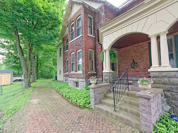 Circa 1880 & listed on the national & historic registers,stately brick Victorian will not disappoint. 2 brick driveways lie adjacent to a masonry front porch w/ graceful arches & a rich, well-maintained wainscot ceiling. Lg deck on the back offers plenty of privacy. 2 baths and laundry, this maybe a home w/ potential for a B&B. Inside are beautiful hardwood floors, a tin ceiling, a claw foot tub, a 4-season sun room, office, & 2 fireplaces. Centrally located in historic Mohawk Valley&close to NYS Thruway.