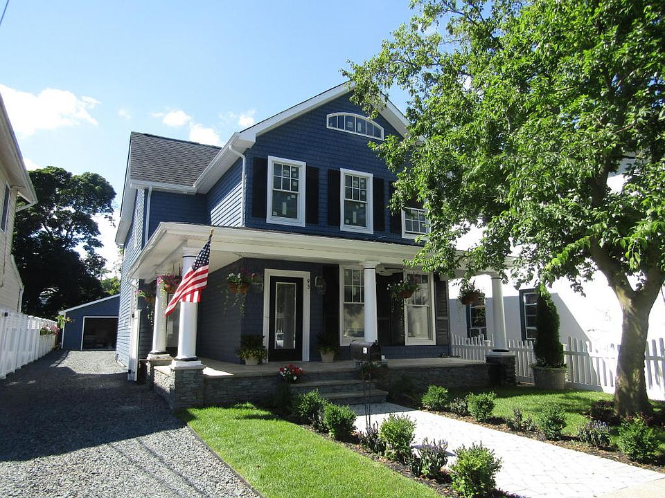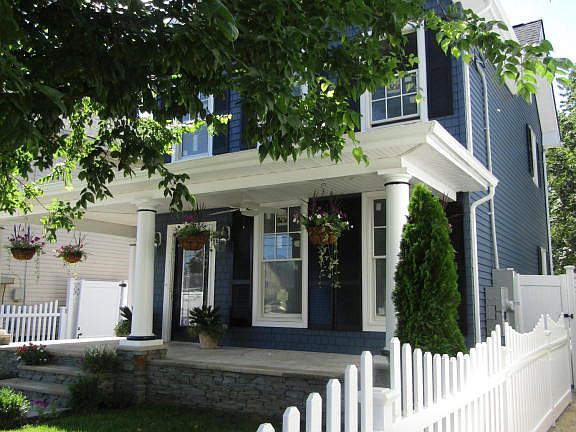 Home Sweet Home! This beautifully renovated shore-style colonial exudes southern charm with its wrap-around rocking chair front porch, elongated black shutters, and white picket fence. The yard is equally charming with an adorable two-car garage, paver patio, lovely deck and perennial landscaping. Driveway and yard are fenced with privacy fencing. Fabulous finishes adorn the interior including large custom moldings, warm gray walls, dark hardwood floors throughout, a white shore-styled kitchen with brushed/honed grey granite and stainless appliances, solid masonite doors, Carrara baths, and two laundry rooms. The master bedroom has an en-suite bath, walk in closet, and private balcony. Large living and dining areas that open either to the front porch or the rear deck. Just Fabulous!