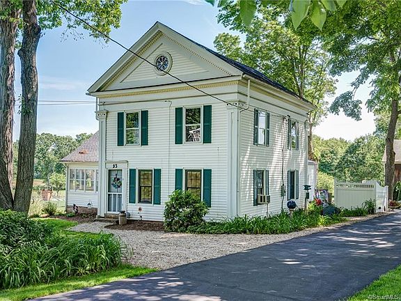 Black Walnut and Shagbark hickory trees are found at this Charming 1850's home located in the Broad Brook neighborhood of East Windsor. A large 1.86 acres this property features a level lot with a 1.5 story 30 x 40 post & beam barn. New roof, siding paved driveway, nice white fencing and a stone patio with fire pit out the rear of the house have been done by the current owner. Kitchen & baths are dated but very functional, There is Black walnut doors and trim and with some further updating this vintage home will be amazing. On the main level you have 2 bedrooms, one acting as the master, large living room with an enclosed sun porch. Off of the kitchen there is a mud room with a wood stove and access to the outdoor patio. Typical of vintage homes the 3 upstairs rooms were probably all used as bedrooms or have two bedrooms with a small room which can be used for an office . There is also a walk up attic for future expansion or just storage.