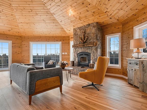 All bright and new, the Blue Lighthouse of Garden Lots is ready to extend a welcome. Not yet lived in, but equipped with everything needed for a good life, this one of a kind home is very suitable for the recreation of body and soul. We imagine creative minds thriving here, as nothing is ordinary or boring. The super solid ICF round structure allows for energy efficiency, good air flow, and for the thoughts to change direction. Everything pleases the senses, from the materials used to build and finish, to the comfort of ducted heating and cooling, and the wonderful, large fireplace. The levels are switched, so the space to spend waking hours is up in the sky, overlooking the treetops, catching a glimpse of the ocean. While the sleeping and bathing quarters are on the main level. The neighbourhood is quiet and upscale with large lots for privacy and protective covenants in place. There is a shared right of way to the shore - a short, walkable path that makes it easy to bring a kayak or small row boat to the beach. This is the perfect place to unwind, while working remotely, without becoming disconnected from the happenings in the Town of Lunenburg, just five minutes away.