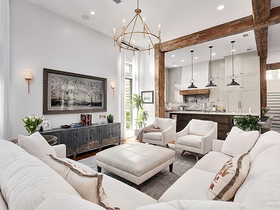 - Beamed Ceilings, Crown Molding, Guest Quarters, Kitchen Island, Bedroom, Dining Area, Kitchen, Living Room, Master Bathroom