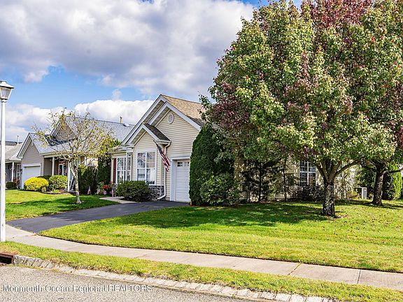 Welcome to Heritage Bay, a 55+ community offering tranquility and an active coastal lifestyle. This Barnegat model home has been tastefully renovated with new carpet, fresh paint, renovated kitchen with updated cabinets and granite countertops, new vanities in both bathrooms, and a new shower in the primary ensuite. Conveniently located across from the clubhouse, it features 2 spacious bedrooms, 2 full baths, a living room with gas fireplace, and a versatile Office/Den. The renovated kitchen boasts stainless steel appliances and opens to a dining/living area. A sliding glass door leads to the renovated sunroom and patio, surrounded by mature arborvitaes. The 1-car garage includes a roomy attic. Amenities include a clubhouse, bocce courts, and pool. Contact us today for a viewing.