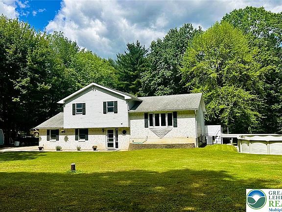 OPEN HOUSE CANCELLED - Spacious and well-maintained split-level home tucked away in a peaceful setting just 30 minutes from the Lehigh Valley in the Lehighton area. Featuring three levels above grade with approximately 1,500 sq ft of finished living space, plus an additional 460 sq ft partially finished on the lower-level ideal for future expansion. The flexible layout includes 3 bedrooms, a full Jack & Jill bath, and a convenient half bath on the entry level. Enjoy both a spacious living room and a cozy family room with French doors leading to a private patio. The kitchen and dining area open to a rear deck—perfect for morning coffee or evening relaxation. An oversized attached 2-car garage and a shed provide ample storage. The home sits on a scenic 1.7-acre lot with wooded borders, naturalized landscaping and lots of ferns. An 16x32 above-ground pool with a newer composite deck and all accessories included—just add a new liner and enjoy! Peaceful and secluded, yet just minutes from major routes including 209, 248, 895, and the PA Turnpike, as well as local shopping, dining, and recreational attractions. A rare opportunity for privacy and convenience—schedule your showing today!