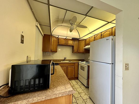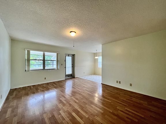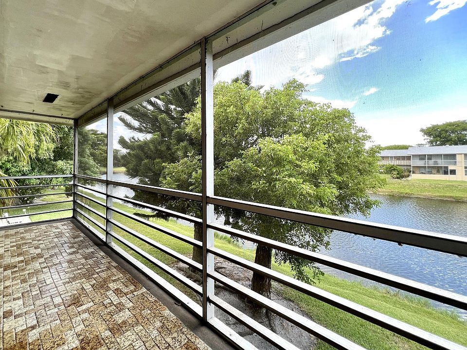 A terrific spot in 55+ Century Village! CORNER 2/1.5 with central AC, pretty WATER VIEWS, and close to Hastings Fitness Center. Updated kitchen cabinets. Laminate wood flooring in living area and bedrooms. Long screened lanai to take in the views and fresh air. Lovely water side resident patio. Accordion shutters. Sold AS IS. Century Village is a 55+ community with so much to offer... shows, movies, clubs, pools, security, and transportation service. The Clubhouse features a theater, indoor pool, card room, community/party room, billiard room, shuffleboard, tennis, pickleball, bocce, and two outdoor pools. Numerous heated outdoor pools throughout the community. Separate fitness center with gym and outdoor heated pool & resistance pool. Two guarded gates and 24-hour roving security patrol.