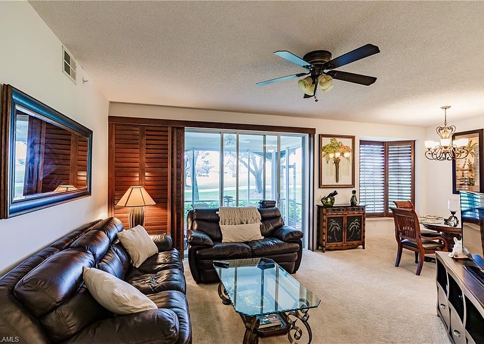 This bright and sunny 2 bedroom / 2 bath condo has southwest exposure with lovely views of the golf course. Move in ready being sold turn-key furnished. Upgraded plantation shutter window treatments throughout and screened in lanai with impact resistant glass sliders to expand your under air square footage. Newer water heater and AC. Roofs replaced 2019! Included in HOA fees are water, internet & cable. Great option for a second home or rental income property (after 1st yr of ownership). Silver Oaks has a private heated, salt water, pool area for all their residents and optional Golf and Social Memberships are available to the Vineyards Country Club. The VCC offers a 70,000 square foot clubhouse, 36 holes of championship golf, 12 Har-Tru tennis courts, Bocce Ball, fitness center, day spa, resort style pool and a variety of dining experiences. Conveniently located close to shopping, a grocery store, pharmacy, I-75, and restaurants.