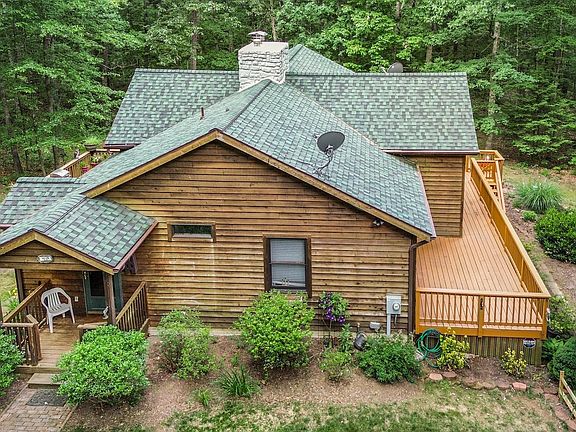 Be one with nature in this beautiful property, surrounded by 5 wooded acres. The hardwood floors in the main living areas have been refinished and are accented by beautiful vaulted ceilings and a gorgeous stone fireplace. Two walls of windows bring the outside in. There are two sizeable secondary bedrooms that share a hall bathroom, and the master bedroom has an attached bathroom and access to the deck. The walk-out and spacious finished basement provides additional living areas, a laundry room and a workshop. Extensive landscaping has been done , adding even more beauty to this picturesque setting. A wrap-around porch and rear deck provide plenty of outdoor space for enjoying this peaceful and private setting. Several recent updates have been done such as new roof in 2019, new HVAC in 2021, Culligan water treatment system and much more.