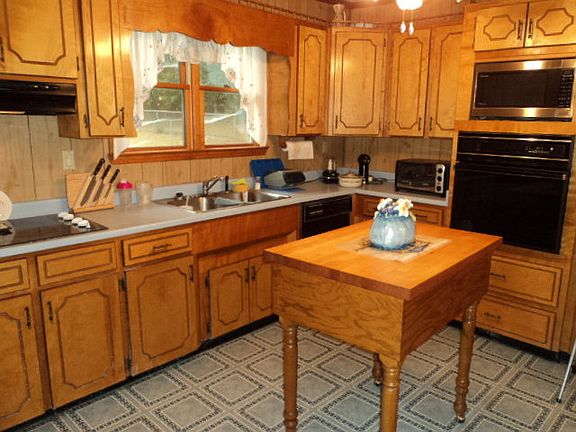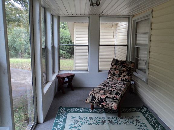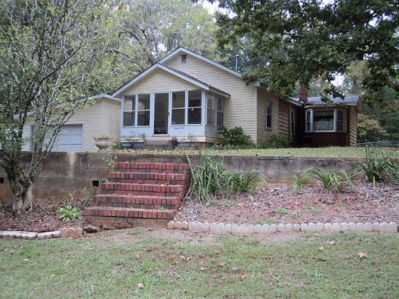 2 Bedroom, 1 1/2 bath, bungalow home is located out of the city limits on a PRIVATE setting with outbuilding for extra storage.This home features laminate flooring, free standing gas log fireplace and central unit, glassed in front porch, fenced in back yard, attached garage, and concrete circular drive. Surface unit,wall oven, microwave, and dishwasher will remain with the property. Home needs floor repairs and would be a great fixer-upper for a rental or starter home. Selling as is.