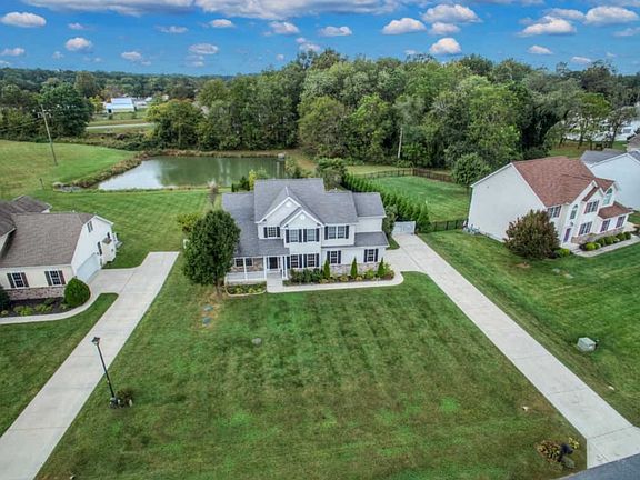 ALL DRESSED UP AND WAITING! Only a transfer makes this home available for quick occupancy. Freshly painted, new carpet and partially finished basement make this ready for the owner. The spacious kitchen offers lots of counter space, corner sink overlooking back yard, granite counters, stainless steel appliances, and 42' maple cabinets. There is a large walk-in pantry and lots of recessed lighting. The breakfast room has sliding doors to composite deck and is convenient to the family room with vaulted ceiling and gas fireplace. The formal living and dining room, along with the entry foyer are sun lit with ample windows. The laundry and powder room and home office/library complete the 1st level. The owners suite offers a 9x12 sitting area and there is an added bonus room adjacent to the large walk-in closet. The owners bath has whirlpool tub, separate shower and double vanity. Three additional bedrooms and hall bath complete the 2nd level. Additional features are decorative columns, crown & chair railing and hardwood flooring in entry, kitchen, breakfast room, laundry and powder room. The home features dual heat & ac, two car garage, .60 acre lot with fruit trees overlooking pond. Look no further and call for your personal showing today.