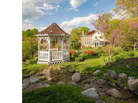 Welcome to Cedaridge Farm, the 2018 Bucks County Designer House and Garden Show Home. It is 20 preserved acres of fantasy and charm, from its Monet inspired gardens, ponds, waterfalls, to the walking paths that take you on a journey over bridges and through a stand of Redwood trees once thought extinct. Surrounded by preserved farmland and Stover Park, Cedaridge Farm promises seclusion and tranquility. A short walk through the woods connects you to the Stover Park trail system that is an adventure in itself. The stone and wood farmhouse was built in 1790 and allows you wrap yourself in it's early history. Two glass solariums offer 250 degree views of the magnificent gardens that Cedaridge is known for and a basement beer/wine cellar provides a cool place to sample the varietal offerings. Wide plank floors, 3 fireplaces, and a creative aesthetic at every turn contribute to this home's warm sense of well-being. From every window you'll find a panorama that will give you pause. Everywhere you look your eye will be challenged by the riot of colors from the gardens. There is a large two story Bank Barn with its post and beams soaring overhead and on the lower level, a wonderful space with two sets of French doors that open out onto the garden patio and pond. Truly an amazing setting for a wonderful country dinner party. The cottage is a romantic place for your guests to ease into a country state on mind, even if its just for a weekend. At the far end of the property is a 3 bedroom, 2 bath mid century modern house that can be a great in-law residence or studio. Cedaridge Farm is a sumptuous feast for the senses that is just 90 minutes from New York, or 70 minutes from Center City. Come visit Cedaridge Farm and give fire to your imagination. Thanks to all the efforts of this talented group of designers.