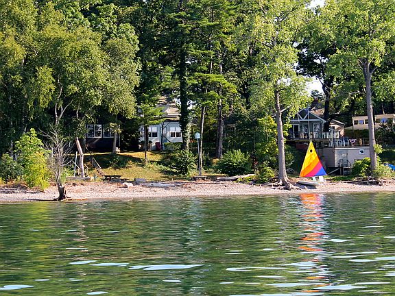 Adorable Lake Ontario waterfront cottage. Located on Sunset Island - a private seasonal community of approximately 100 vintage lake cottages. Sunset Island is across the bay from the Wilson Boathouse Marina and the Sunset Grille - two great places to eat and enjoy live music in a true lakefront environment. We are one of a few cottages on the island that has our own direct access to the beachfront. Walk right into the lake for swimming, boating, and view the Toronto skyline while enjoying unbelievable sunsets. Two large bedrooms both with lake views plus a large sleeping porch. Lots of updates including new kitchen in 2017, hot water tank in 2016, wood-look vinyl floors throughout upstairs 2015, new toilets, new paint throughout, etc. Two small sheds on property to keep all your tools and toys. Cottage comes fully furnished including many original antique furniture pieces and sunfish sailboat. 2003 Chaparall motor boat negotiable. Located on private island that is accessed by foot through state park or by boat. The cottage comes with lifetime use of private dock on bay side of island. The island is all privately owned cottages and has an association that maintains the common areas which include a small park, tennis court and a meeting hall. The island is close to the town of Wilson which has several restaurants, a small grocery store, bank, library, hardware store, etc.