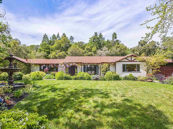 Beautiful French Country designed single-family estate is an expansive private retreat, nestled in a stunning oasis of gardens. Tucked away off a private driveway and located in the highly desirable Sleepy Hollow neighborhood, this updated home sits on approximately 1.84 acres with sweeping views of the open space. Tranquil property sits behind a gated driveway, and features stunning oak trees and enchanting colorful and lush landscaping. Home has a large living room with high ceilings and a fireplace, wide-plank oak hardwood floors, chef’s kitchen with high-end appliances, including a custom Lacanche range and eat-in dining space. Spacious primary bedroom has an ensuite bath, walk-in closets, and a gas fireplace while 2 additional bedrooms share an updated hall bathroom. French doors leads to a sun-filled covered flagstone patio area in the backyard and a large flat lawn area, offering the best indoor/outdoor California lifestyle living and providing a year-round entertainment space for family and friends. Laundry room with additional built-in storage. Conveniently located close to downtown Orinda and Orinda Country Club, as well as the top-rated Orinda schools, farmer’s market, and trails with easy access to Hwy 24/680 and BART.