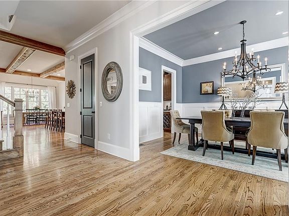 Prepare to fall in love. All the charm of Historic Roswell in this timeless, custom-built 4 sided brick home with a 3 car garage just steps from the vibrancy of Canton Street. The inviting arched front door opens to an expansive foyer with cozy library, built-in cabinetry and access to a rocking chair front porch. Architectural wainscoting frames a banquet sized dining room with butlers pantry/wine bar. A kitchen design truly ahead of its time with rich wooden beams, an expansive center island, quartz countertops and large walk-in pantry. Open views to casual dining room and light-filled family room with stone fireplace and built-ins. Enjoy gorgeous sunsets on the screened porch. Upper level features a spacious master suite with private sitting room/office/nursery and stunning master bath. An open loft and two additional bedroom suites complete the upstairs. Incredible space in the terrace level perfect for 2nd family room/media/game room or in-law suite with fireplace, kitchenette, full bath & private entrance. Half acre lot has nice tree lined backyard. The 3-car garage is for the golf cart everyone wants to get frozen custard! An ideal blending of modern appointments and thoughtful design to fit perfectly in the truly walkable district of Historic Roswell. Simply a joyful lifestyle.