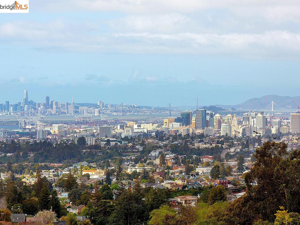 If you have been waiting for the rare combination of one-level living, sweeping San Francisco Bay views and nearly 1/3 acre of mostly level grounds, then look no further. Enjoy a relaxed California lifestyle in this recently updated Mid-century close to Redwood Regional Parks, shops, freeway access & SF Express bus. The front porch creates a wonderful seating area to greet neighbors, enjoy a cup of coffee and the morning sun. Inside, you will delight in the open floorplan with all the public rooms visible, beautiful hardwood floors and light-filled spaces. The spacious living room with its central fireplace and wall of windows offers views of the front yard and hillside beyond. The recently updated chef’s kitchen serves as the hub of the home and showcases spectacular SF Bay and bridge views. The chef will appreciate the Caesarstone countertops with seating for 4, newer cabinetry with pullouts, a Gaggenau oven, and 5 burner cooktop. The adjoining dining room has level out access to the spacious patio and grounds beyond which are fully fenced and hidden from view. You'll love the sweeping vistas and all the room for outdoor cooking, dining, entertaining and play. This property has endless opportunities for an urban farm, play structure, sports court and expansion potential.