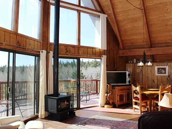 Very Roomy Chalet with Great Views. 3 BR plus Loft with room for sleeping and 2nd Living, 2 Baths with 1,846 sf on .68 acres. Sits on top of a Ridge and offers Northerly and Ski Hill views from the home and the Exterior Decks. Open Style Kitchen with Deck Access. Recently renovated decks, kitchen, carpet & Master Bath. Close to Monte Verde Lake and Angel Fire Country Club. Drive your Cart to the Angel Fire Golf Course. Priced to Sale! Would be a great rental with Rental History & sleeps 12.