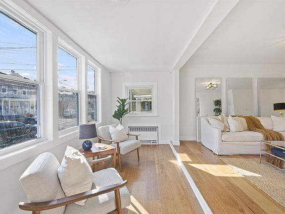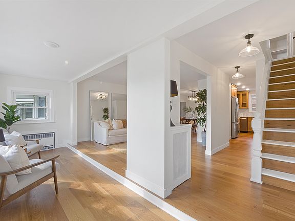 93 West 27th Street is a 4 Bedroom 2.5 Bath single-family home with parking located in the heart of Midtown Bayonne. This home is fully detached on both sides, with countless windows and glass sliders that flood the main living level with natural light. The open concept layout features a large living room, sunroom, kitchen, powder room, and formal dining room with sliders opening to a Trex deck with stairs to lush backyard lawn. The brand-new open kitchen featuring custom cabinetry, copper & bronze hood, stainless steel appliances, and quartz counters. The second level boasts a Primary Suite, with two closets and ensuite bathroom, a large secondary bedroom, second full bathroom and linen closet. The third floor completes the home with two additional bedrooms. Located on a quiet side street, just steps up the block to Broadway shopping, NYC buses, schools, parks, and the light rail. Easy access to major highways, NYC Bridges, and tunnels. This vacant turn-key single-family home is ready for the new buyer to move in! Staging Furniture by Palisade Design - PalisadeDesign.com.