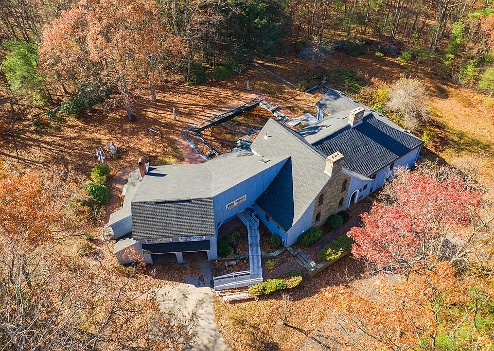 An amazing custom sprawling and very private property. This large meandering builder's home is the canvas for a terrific renovation story. For the buyer looking to put their own modern touch on this fabulous house tucked back on over 4 acres in Bolton. There are 14 unique rooms, including 4 bedrooms and 5 bathrooms, a finished basement, outside kitchen space, a 4-car detached carriage house plus 2 more garage bays attached to the main house. Beautiful fieldstone finishes inside and out.