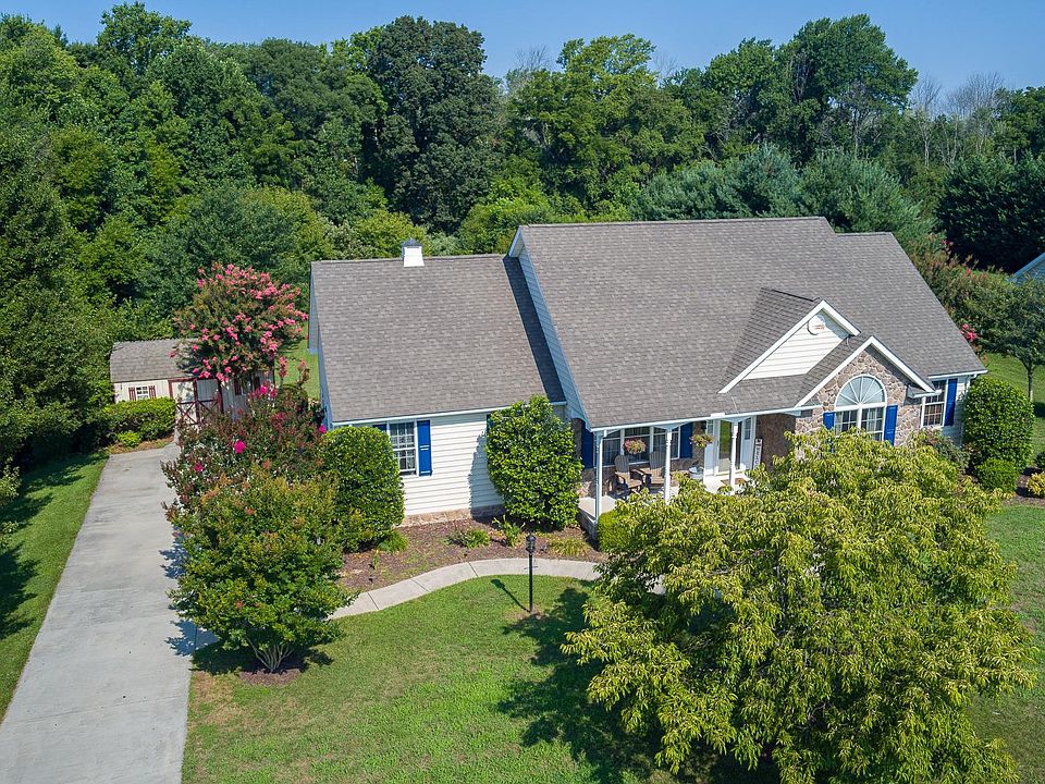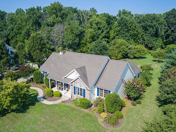 3 bedroom 2 bath ranch on half acre lot that backs to wooded open space, The welcoming front porch opens into the foyer with hardwood flooring, dining room features hardwood floors, chair rail and crown molding, the hardwood continues into the kitchen with Oak Cabinets with pewter hardware and granite counters, gas stove, built in microwave, tiled backsplash and pantry. Large great room has vaulted ceiling, cozy fireplace and overlooks the backyard. Large screen in porch with fan that allows you to enjoy the wooded open space. Master bedroom with walk in closet, master bath, crown molding and skylight, Laundry room has cabinets and wood wall features, 2 bedrooms and a hall bath. Turned 2 car garage and a shed with electricity also a 14 X 21 composite deck perfect for cook outs.